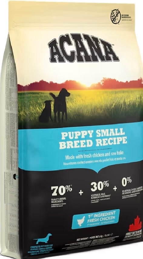 新鮮鶏肉 (18%), 鶏ミール (18%), 丸ごと赤レンズ豆, 丸ごとグリーンピース, 新鮮鶏内臓 (レバー, 心臓) (7%), 鶏脂肪 (7%), 七面鳥ミール (4%), 新鮮卵 (4%), 生ヘイク (4%), ニシンミール (4%), フィッシュオイル (3%), 丸ごと緑レンズ豆, 丸ごとヒヨコ豆, 丸ごとイエローピース, ヒヨコ豆繊維, エンドウ豆スターチ, 生七面鳥レバー (1%), 塩, 乾燥ケルプ, 新鮮丸ごとカボチャ, 新鮮丸ごとバターナッツスクワッシュ, 新鮮丸ごとニンジン, 新鮮丸ごとリンゴ, 新鮮丸ごと洋梨, 新鮮丸ごとズッキーニ, 乾燥チコリールート, 新鮮ケール, 新鮮ホウレン草, 新鮮カブラ菜, 新鮮ビートの葉, 丸ごとクランベリー, 丸ごとブルーベリー, 丸ごとサスカトゥーンベリー, ターメリック, オオアザミ, ゴボウ, ラベンダー, マシュマロルート, ローズヒップ