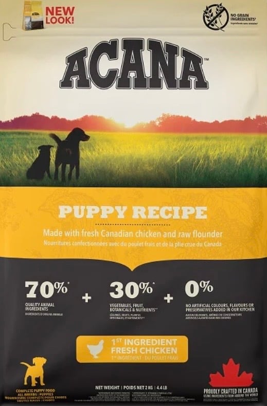 アカナのドッグフードは、全ての原材料にこだわり最高品質のものを使用。「アカナ パピーレシピ」は、全犬種の子犬が元気に成長できるよう、原材料調達から調理まで考え抜いて作られています。カナダ産の新鮮な鶏肉や生のヘイクなどの高品質な動物原材料を70%、フルーツや野菜、ハーブを30%とバランスよく配合したこのドッグフードは成長期の全犬種の子犬の健康をサポートし、食べやすい小粒タイプになっています。