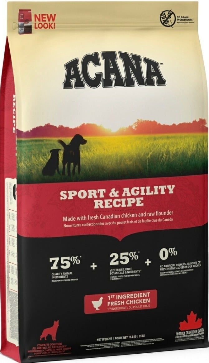 アカナのドッグフードは、全ての原材料にこだわり最高品質のものを使用。「アカナ スポーツ&アジリティレシピ」は、活動量が多くエネルギッシュな全犬種に向けて考え抜いて作られました。カナダ産の新鮮な鶏肉や生のヘイクなどの高品質な動物原材料を75%、フルーツや野菜、ハーブを25%と動物性タンパク質を多めに配合し、活動的な愛犬に必要な動物性たんぱく質、脂肪をたっぷり含んだドッグフードで、小食や痩せている犬にオススメです。